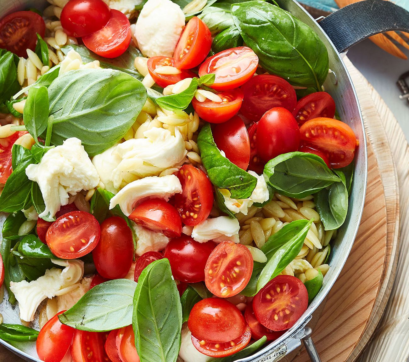 Chop up the basil mozzarella and tomatoes. I enjoy cold pasta salads and rice salads so I decided to make one with orzo a rice-shaped pasta. Salad can get boring fast.