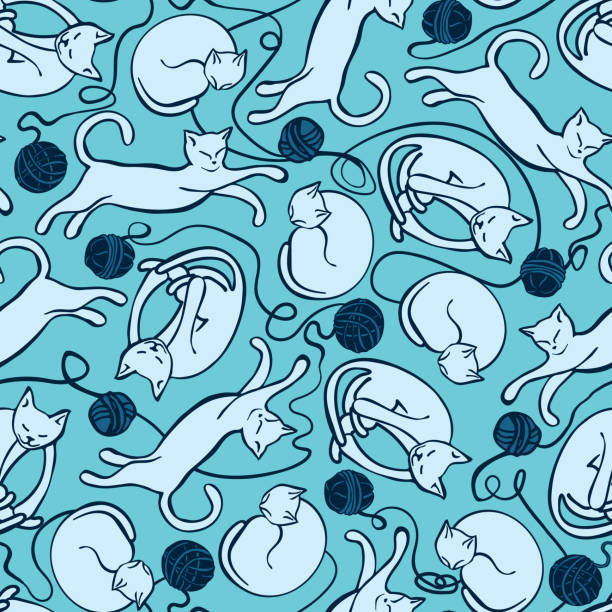 30 Cat With Knitting And Balls Of Yarn Seamless Background Pattern Illustrations Royalty Free Vector Graphics Clip Art Istock