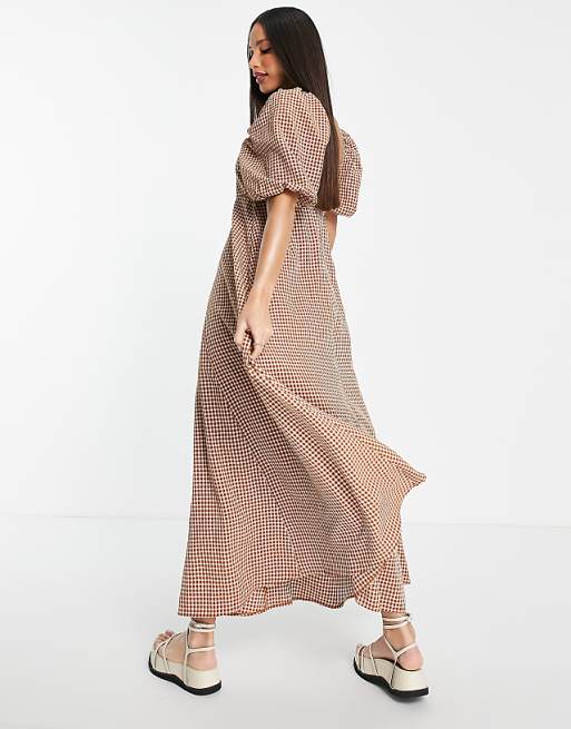 Https Petalandpup Com Au Products Farley Flutter Sleeve Midi Dress Tan Gingham